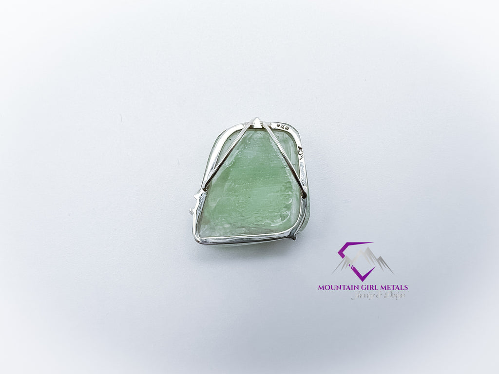 Capture the soothing, natural beauty of this gorgeous, cabochon Green Fluorite gemstone, artfully secured in a simple, elegant embrace of solid Sterling Silver. This unique pendant highlights the soft, translucent quality and gentle green color of the natural stone, making it a perfect piece for everyday wear.