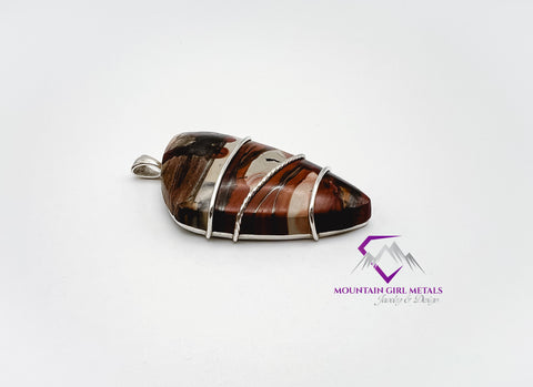 A stunning, one-of-a-kind pendant featuring a rich piece of Indian Painted Rock, secured with fine sterling silver metalwork. This piece beautifully captures the dramatic, earthy artistry of the stone, making it a powerful statement accessory.