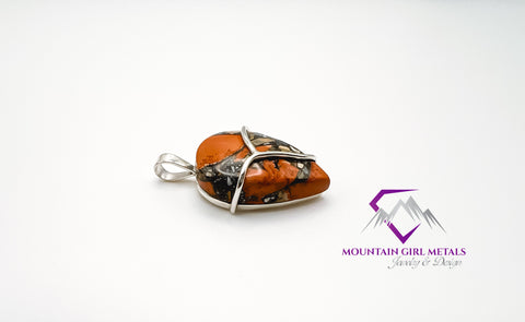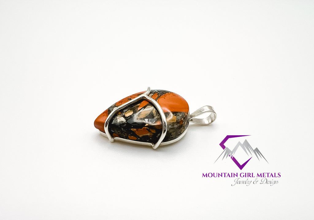 Capture the dramatic artistry of the Earth with this unique, handcrafted pendant featuring a stunning Maligano Jasper stone set in sleek sterling silver. This tear-drop shaped stone displays a vibrant, picturesque landscape of color that makes it a true statement piece.