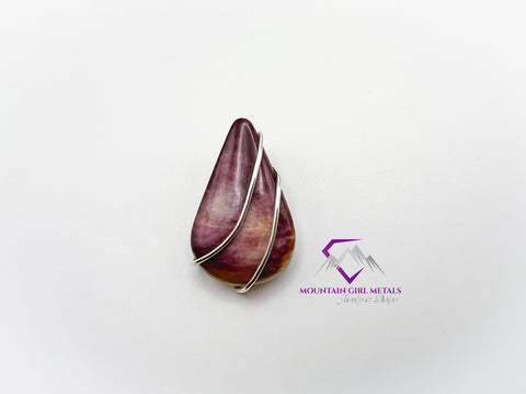 Elevate your jewelry collection with this stunning, handcrafted teardrop pendant featuring a beautiful piece of natural purple Spiny Oyster Shell (also known as Spondylus). The rich, variegated purple, and reddish-brown hues of the shell are secured by a sleek, minimalist setting of genuine sterling silver that elegantly cradles the stone's shape. This unique piece is perfect for anyone who appreciates natural materials and artisan craftsmanship.
